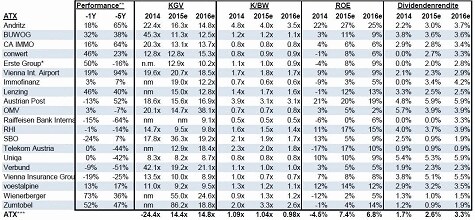 Der einzige Wert, der in den letzten Tagen einen Kursrückgang zu verzeichnen hatte, war die SBO, die knapp 4% nachgab. Der SBO macht weiterhin der niedrige Ölpreis zu schaffen, welcher letzte Woche wieder unter die USD 50 Marke (Brent/Barrel) gefallen ist. Mit dem gleichen Problem kämpft auch die OMV, die Anfang der Woche ihr Trading Statement veröffentlichte. Die nach unten revidierten Ölpreisprognosen veranlassten das Unternehmen, Wertberichtigungen in Höhe von EUR 1 Mrd. vorzunehmen. Daneben zieht die OMV den Verkauf von 49% ihrer Tochter Gas Connect Austria in Betracht. Die OMV ging letztendlich mit einem Plus von 1,6% aus der Woche.