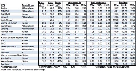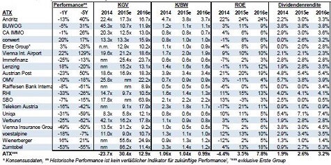 Weitere Unternehmensnews gab es von der OMV (+1,2%), die ihr Trading Statement zum Q1 veröffentlicht hat. Das Q1-Ergebnis wird voraussichtlich sehr schwach ausfallen. Die Aktie konnte in der letzten Woche dennoch leicht zugewinnen, was auf den Anstieg des Ölpreises zurückzuführen ist. Die von der Porr (-5,9%) vorgelegten Kennzahlen zum Geschäftsjahr 2015 zeigen eine Verbesserung der Profitabilität, die allerdings etwas unter unserer Erwartung lag. Besonders attraktiv für Anleger ist die Ergänzung der Basisdividende von EUR 1,0 um eine Sonderdividende von EUR 0,50.