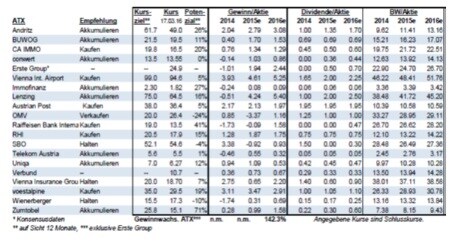 Gewinnschätzungen Österreich - ATX