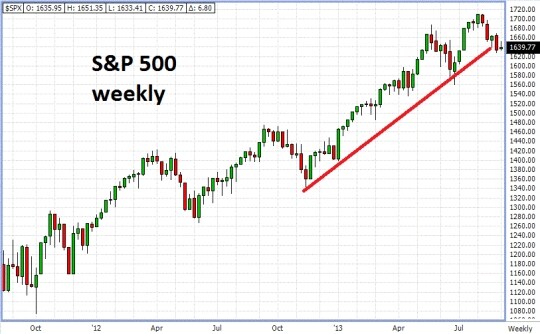 Aber es gibt noch einen weiteren Brennpunkt, der zu anhaltenden Rückgängen führen kann: Verschärft sich die Krise in den Emerging Markets, wird dort weiter massiv Geld abgezogen und kollabieren die dortigen Währungen, dann fällt ein wichtiger Motor der Weltkonjunktur aus und mehrere Monate Baisse sind an der Wall Street und in Europa zu erwarten. Das ist die momentan größte Achillesferse, da hier wenig eingepreist ist! Dagegen ist die deutsche Bundestags-Wahl fast ein Non-Event, zumal eine Rot-Grüne Regierung unwahrscheinlich ist. Es bleibt also sehr spannend. Was man prognostizieren kann: