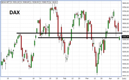 Damit wird die von mir für das erste Halbjahr avisierte Korrektur nun greifbar. Das zeigt auch die Markttechnik. Der DAX hat seine Erholung abgeschlossen. Sie war zwar stärker als erwartet, aber wohl doch nur Teil der Topbildung. Die wichtige Zone ist nun 9.380/9.420 Punkte. Darunter stehen die Ampeln auf Gelb. Rot wird es unterhalb von 8.960/9.000. Ich wiederhole: 8.200 bis 8.450 im DAX wäre nur eine "normale" Korrektur.