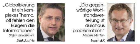 Aber die Globalisierungsskepsis hat auch einen sehr realen Boden. Bruckbauer erklärt: "Die Gewinne der Globalisierung sind schlechter verteilt als ihre Kosten. Offene Märkte führen auch zu Problemen, wobei Globalisierung nicht mit der rasanten Technologisierung gleichgesetzt werden darf. Ich schätze, dass rund 80 Prozent der Menschen, die sich als Globalisierungsverlierer sehen, in Wirklichkeit unter Automatisierung, Digitalisierung etc. leiden. Es gehen dadurch viele Jobs im niedrig qualifizierten Umfeld verloren, die aber später im Servicebereich wieder gefunden werden können. In Europa sind die Sozialsysteme viel stärker ausgebaut als in den USA, deshalb kann die Zeit bis zum Wiedereintritt in die Arbeitswelt besser überbrückt werden. Ein solcher Ausgleich ist in den USA nicht in diesem Ausmaß vorhanden." Die Aufgabe für die Politik sei es also, dort zu helfen, wo durch die Globalisierung Probleme auftreten und gleichzeitig rational zu argumentieren. "Das kann durchaus auf nationalistischer Ebene erfolgen: ,Austria first‘ heißt in Wirklichkeit offene Märkte anzustreben. Für Österreich ist es ein riesiges Glück, in der EU zu sein, denn wir verfügen über keine Großkonzerne und würden ohne EU praktisch keine Verhandlungsmacht besitzen", so Bruckbauer. Aufgrund der Zugehörigkeit zum großen europäischen Binnenmarkt würden sich die Auswirkungen eines Protektionismus made in USA für Österreich auch in Grenzen halten, das Land sei außerdem gar nicht schlecht aufgestellt: "Wir sind bei der Globalisierung weit vorne, das Sozialsystem ist stark ausgebaut und im internationalen Vergleich ist die Einkommensverteilung überdurchschnittlich gerecht. So können negative Effekte der Globalisierung abgefangen werden", meint der Bank Austria-Experte.