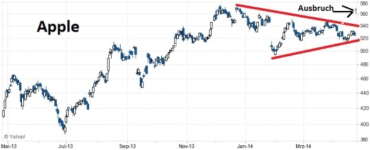 Technisch ist die Aktie zudem aus einem Dreieck nach oben ausgebrochen. Nach unten hin ist der Wert also gut abgesichert. Doch wird die Aktie im aktuellen Umfeld stark steigen? Das wird für diesen schweren Wert nicht einfach, zumal auch schon acht Prozent nach den Daten gewonnen wurden. Wahrscheinlicher ist ein moderater Anstieg oder aber eine volatile Seitwärtsbewegung, falls der Gesamtmarkt in eine stärkere Korrektur läuft. Einen Rückfall in das eingezeichnete Dreieck halte ich für unwahrscheinlich. Demnächst dürften Kaufempfehlungen/Hochstufungen der Analysten erfolgen.