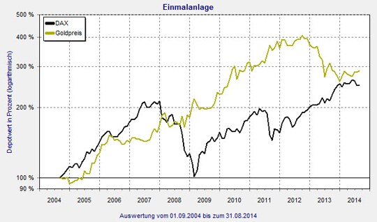 DAX und Goldpreis auf zehn Jahre: Kopf-an-Kopf-Rennen