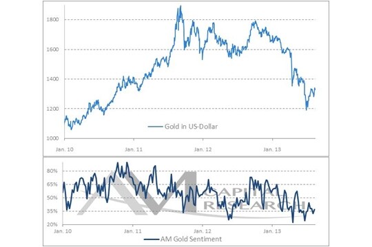 Ebenfalls könnte die angekündigte Einschränkung der US-Notenbank bezüglich ihrer Anleihekäufe kurzfristig für stagnierende Kurse sorgen. Längerfristig hingegen sehe ich nur den irgendwann ansteigenden Realzins als leichte Belastung für den Kurs des Goldpreises. Dieser ist jedoch erst vor kurzem von einem negativen Realzins in den Positiv-Bereich gewandert.
