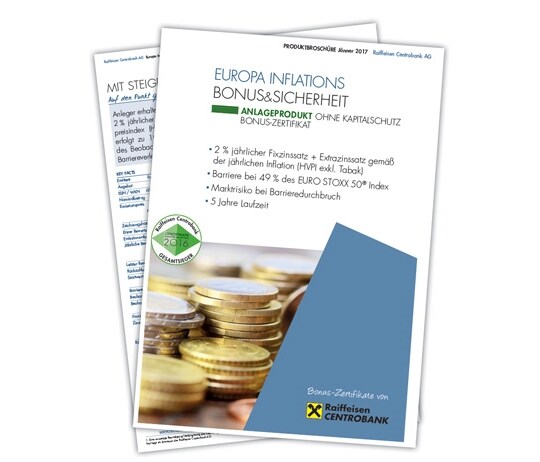 Für sicherheitsorientierte Anleger, die im Nullzinsumfeld einen Mehrertrag nach Inflation suchen und gleichzeitig bereit sind, ein gut kalkulierbares Risiko einzugehen, kann das Europa Inflations Bonus&Sicherheit-Zertifikat der Raiffeisen Centrobank eine spannende Veranlagungsalternative darstellen.