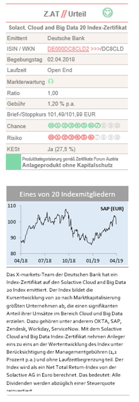 Neu am Markt: Solactive Cloud and Big Data 20 Index-Zertifikat (Deutsche Bank)
