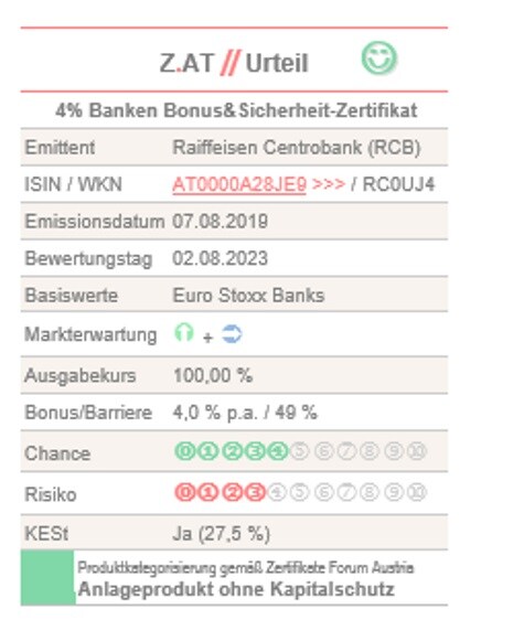 Neuemission: 4% Banken Bonus&Sicherheit-Zertifikat (Raiffeisen Centrobank) - Der Druck hält an