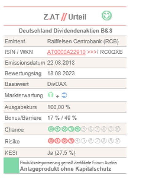 Neuemission: Deutschland Dividendenaktien Bonus&Sicherheit (Raiffeisen Centrobank)