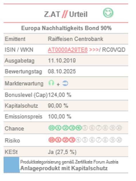 Neuemission: Europa Nachhaltigkeits Bond 90% (Raiffeisen Centrobank)