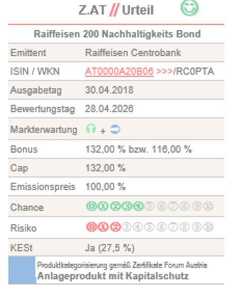 Neuemission: Raiffeisen 200 Nachhaltigkeits Bond (Raiffeisen Centrobank)